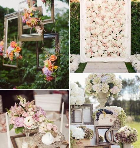 Portarretratos, velas, candelabros, mantelerías de encaje, vajillas con estampados florales...
