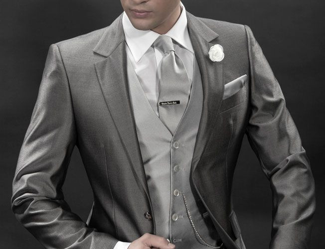 Traje: puede utilizarse en bodas más informales, el color depende de la hora en que se realice el evento. El traje se compone por: levita, pantalón, chaleco y corbata.