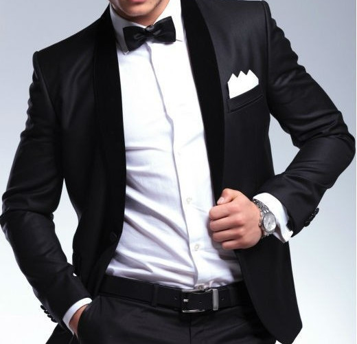 Esmoquin: esta prenda de etiqueta se ha convertido en la favorita de los novios ya que puede usarse de día y de noche. Está compuesto por: chaqueta, pantalón, pajarita o corbata y fajín o chaleco. El esmoquin es el más fácil de combinar.