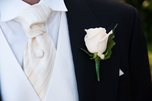 Boutonnière: es el adorno que lleva el novio en la solapa del saco, generalmente se usa una flor pequeña, que suele ser igual a las que lleve la novia en el ramo.