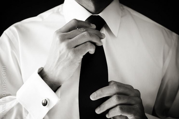 Corbata o moño: Elegir la corbata ideal depende también del tipo de traje que llevarás, con un frac o esmoquin puedes usar la pajarita. Una corbata lisa suele ser una buena opción, atrévete a usar un color llamativo, puedes combinarlo con el color de boda o con el ramo de la novia. Si se usa frac, preferiblemente se debe combinar con una corbata y si se viste un frac o esmoquin, se debe usar un moño.